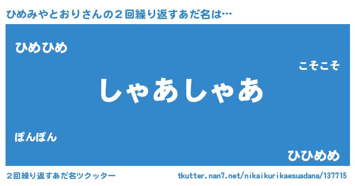 | 意味不明あだ名 | 『住所不定無職ひめみやとおり(8歳)』 |