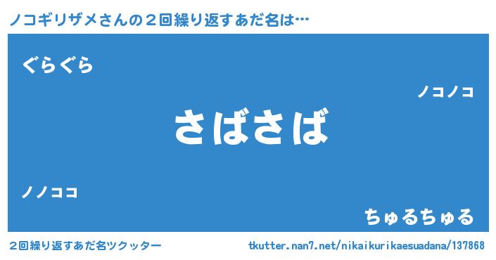 | 意味不明あだ名 | 『住所不定無職ノコギリザメ(91歳)』 |