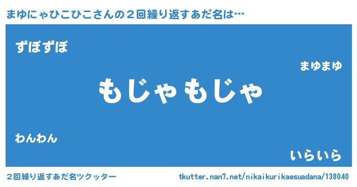 | 男性向けラノベタイトル風あだ名 | 『Re:まゆにゃひこひこから始める異世界生活』 |