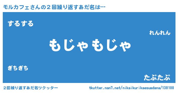 | 男性向けラノベタイトル風あだ名 | 『Re:モルカフェから始める異世界生活』 |