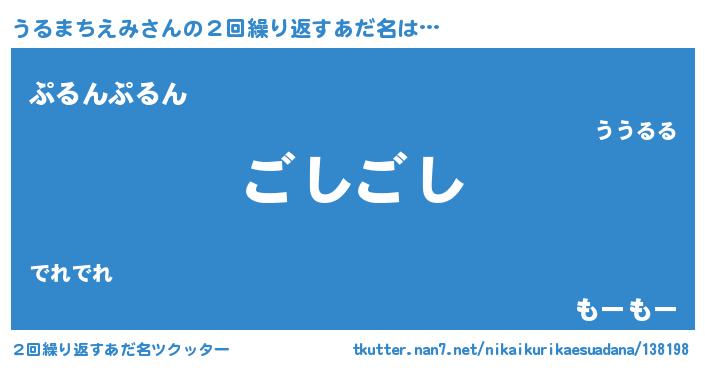 | 意味不明あだ名 | 『永久保存うるまちえみ』 |