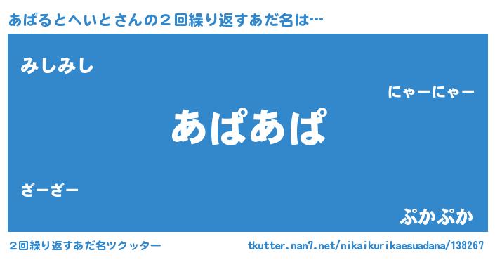 | ヘコむあだ名 | 『あぱふぇ~』『あぱお』『なまこ酢』 |