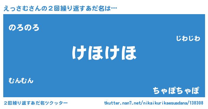 | 意味不明あだ名 | 『永久保存えっさむ』『自称えっさむ』 |