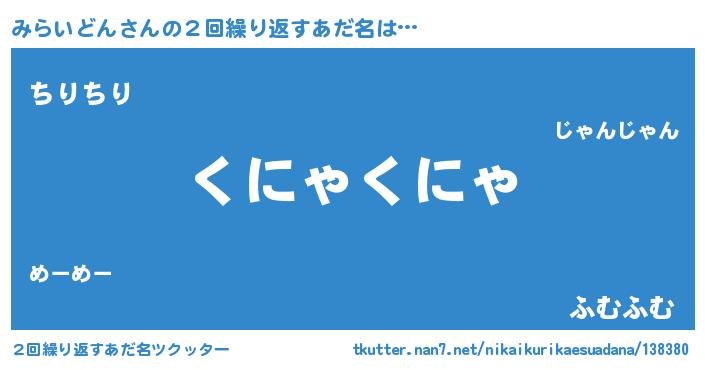 | 意味不明あだ名 | 『永久保存みらいどん』『自称みらいどん』 |