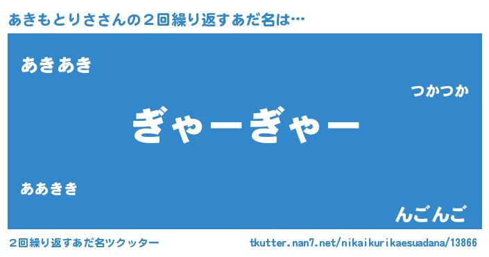 | 意味不明あだ名 | 『永久保存あきもとりさ』 |