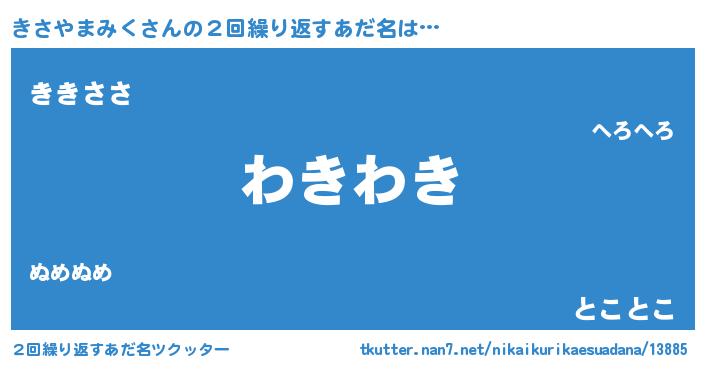 | 男性向けラノベタイトル風あだ名 | 『転生したらきさやまみくだった件』 |