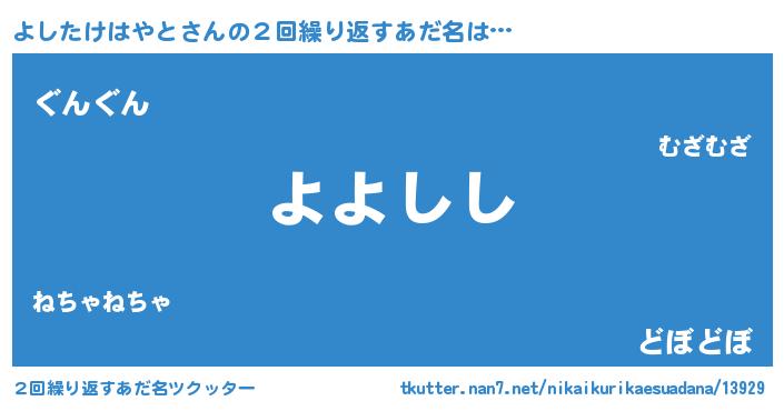 | ポケモン風あだ名 | 『ヨシタダネ』『ゼニヨシ』 |