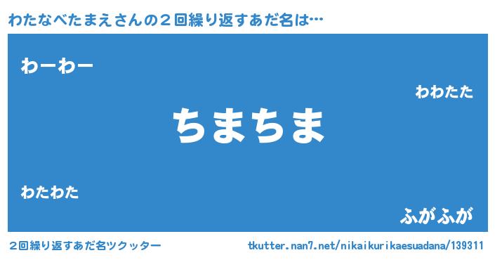 | 欧米人風あだ名 | 『アンジェラ・わたなべたまえ』 |