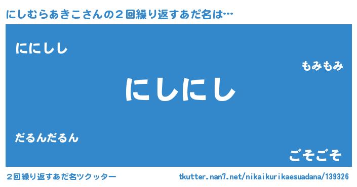 | ポケモン風あだ名 | 『ニシチュウ』『ニシムダネ』 |