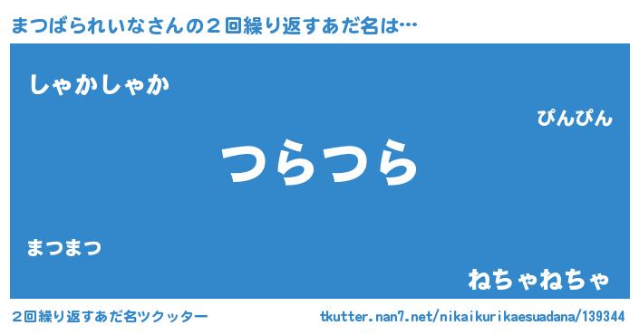 | 欧米人風あだ名 | 『まつばられいな・ステッグマイヤー』 |