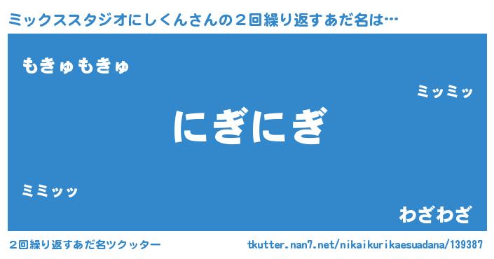 | 欧米人風あだ名 | 『ウサインミックススタジオにしくん』 |