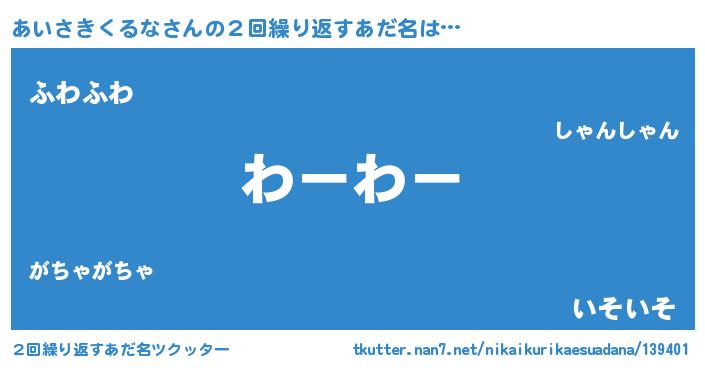 | 男性向けラノベタイトル風あだ名 | 『転生したらあいさきくるなだった件』 |