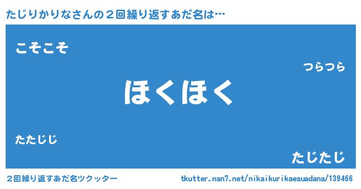 | ヘコむあだ名 | 『たじりかりな(爆)』『たじっふぃ~』 |