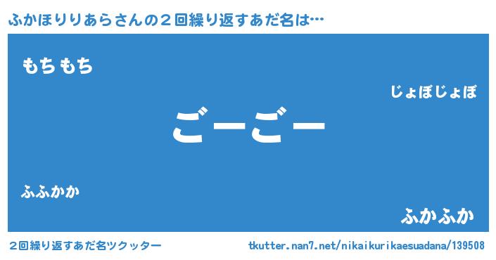 | ヘコむあだ名 | 『ふかほりりあら(震え声)』『ふかにゅー』 |