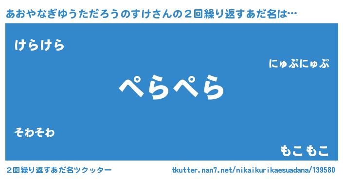 | ヘコむあだ名 | 『あおやなぎゆうただろうのすけ(爆)』 |