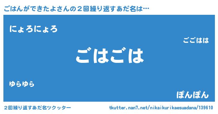 | ポケモン風あだ名 | 『ゴハチュウ』『ヒゴハンガデキタヨ』 |