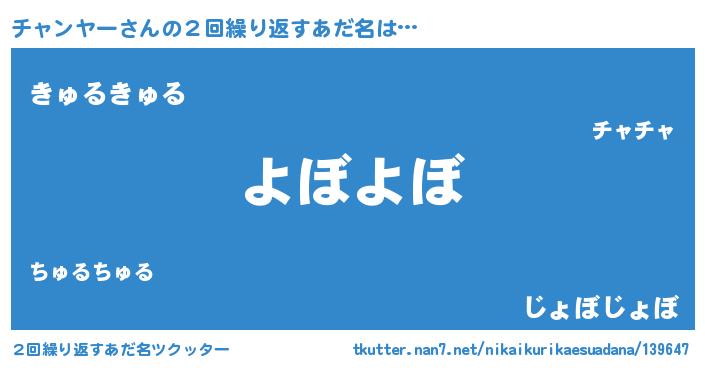 | ヘコむあだ名 | 『チャンヤー(震え声)』『チャっふぃ~』 |