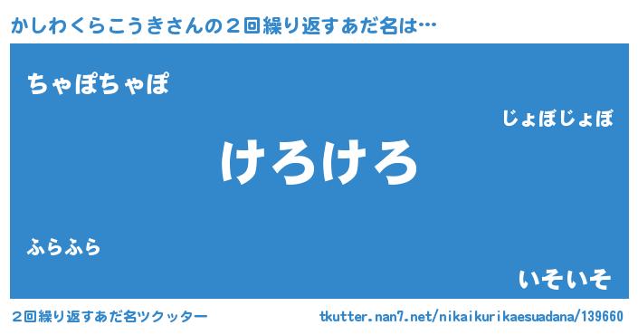 | ヘコむあだ名 | 『かしわくらこうき(笑)』『かしお』 |