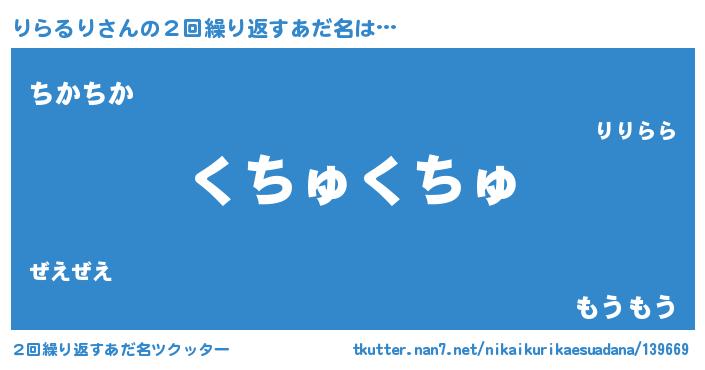 | 意味不明あだ名 | 『永久保存りらるり』『自称りらるり』 |