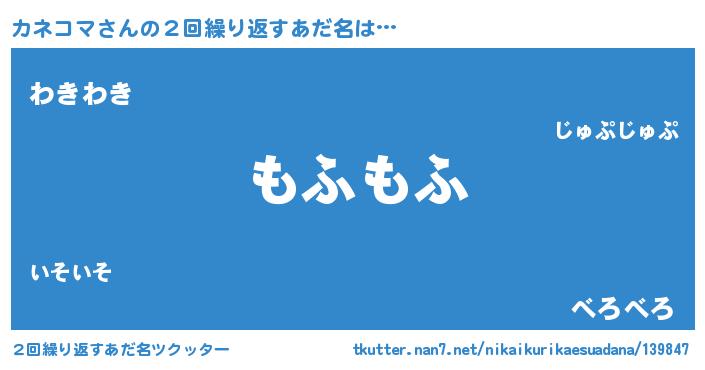 | 男性向けラノベタイトル風あだ名 | 『Re:カネコマから始める異世界生活』 |
