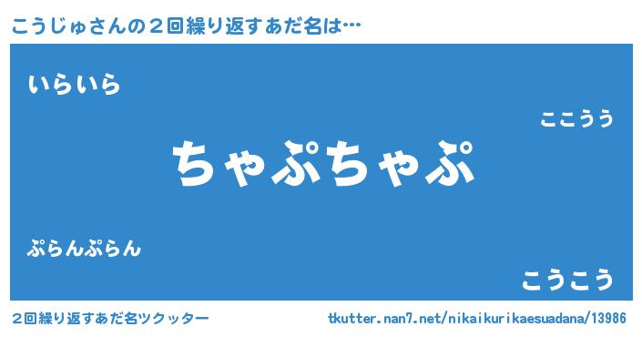 | 意味不明あだ名 | 『とにかく怪しいこうじゅ』 |