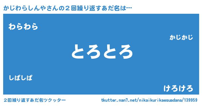 | ヘコむあだ名 | 『かじわらしんや(笑)』『かじにゅー』 |