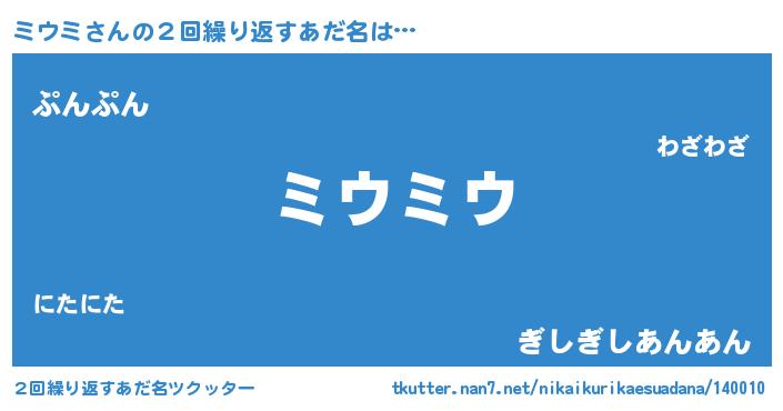 | ポケモン風あだ名 | 『ミウゴンZ』『ミウチュウ』 |