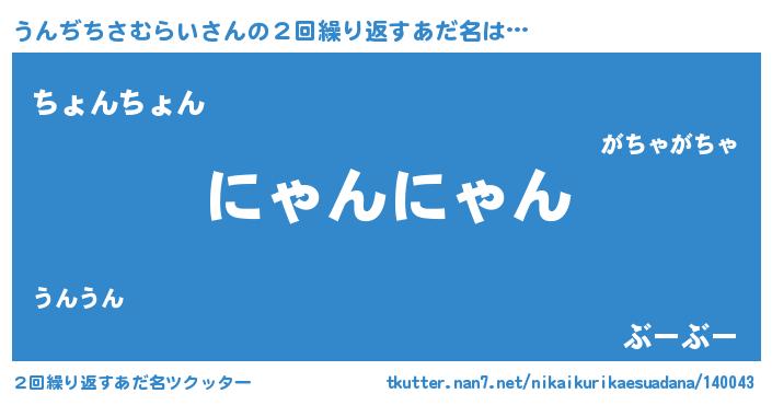 | 欧米人風あだ名 | 『ウサインうんぢちさむらい』 |