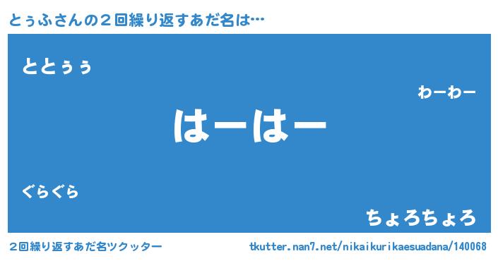 | ヒーロー風カッコイイあだ名 | 『正義の使者とぅふ』『ネオトゥフ』 |