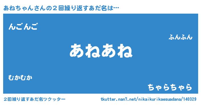 | 意味不明あだ名 | 『ペロリンあねちゃん』『自称あねちゃん』 |
