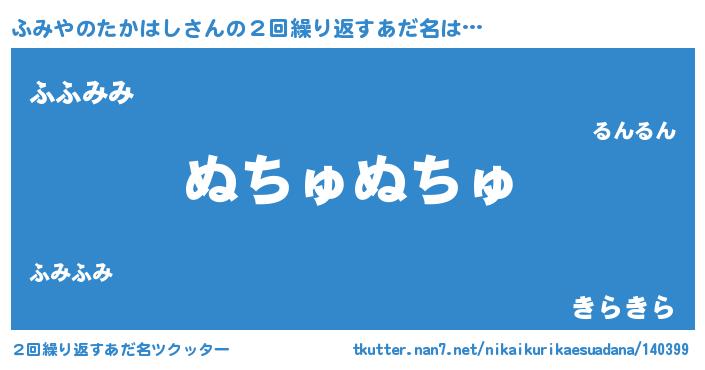 | 男性向けラノベタイトル風あだ名 | 『ふみやのたかはしの嫁は女の子じゃないと思った?』 |