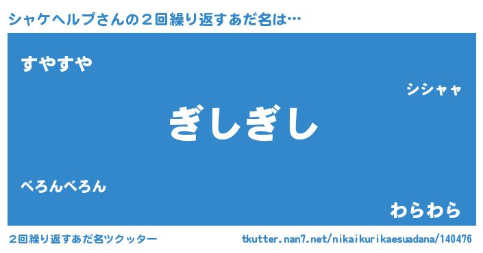 | ヒーロー風カッコイイあだ名 | 『ネオシャケヘルプ』『仮面シャダー』 |