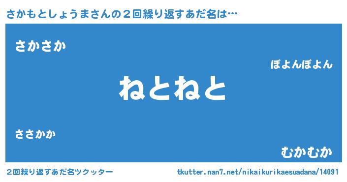 | 男性向けラノベタイトル風あだ名 | 『さかもとしょうまの嫁は女の子じゃないと思った?』 |