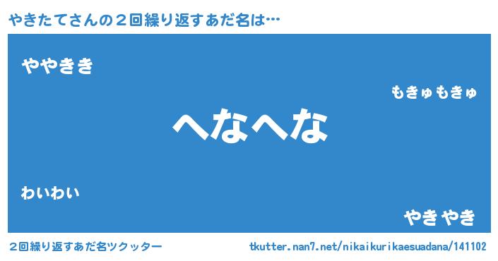 | 欧米人風あだ名 | 『ダニエルやきたて』『マイケルやきたて』 |