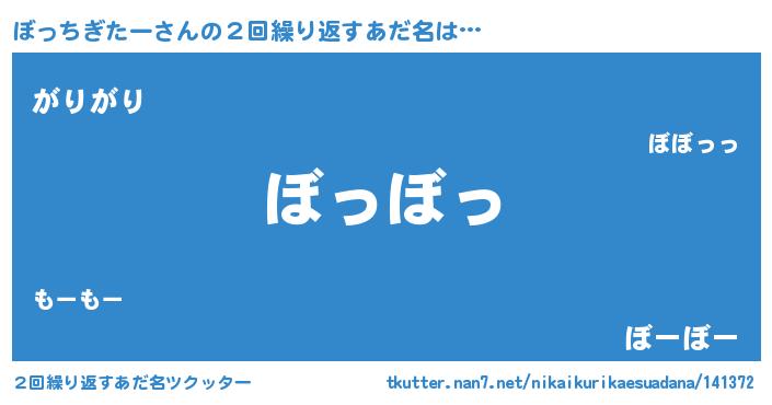| ヘコむあだ名 | 『ぼっふぇ~』『ぼっちぎたー(爆)』 |