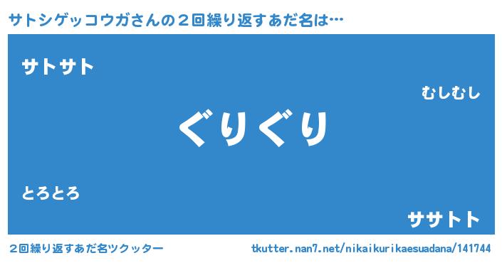 | 意味不明あだ名 | 『永久保存サトシゲッコウガ』 |