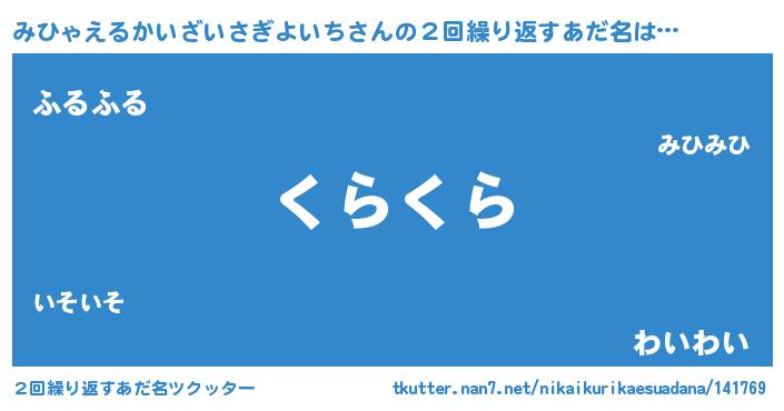 | 意味不明あだ名 | 『永久保存みひゃえるかいざいさぎよいち』 |