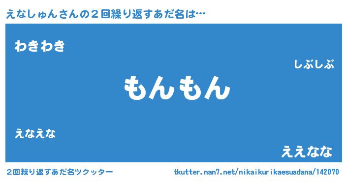 | 男性向けラノベタイトル風あだ名 | 『Re:えなしゅんから始める異世界生活』 |