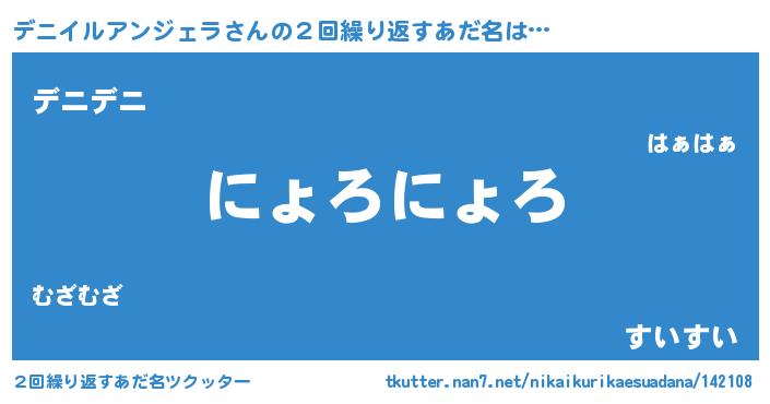 | 男性向けラノベタイトル風あだ名 | 『デニイルアンジェラの嫁は女の子じゃないと思った?』 |