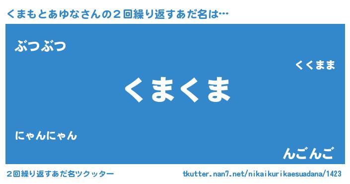 | ヘコむあだ名 | 『くまもー』『牛乳』『くまぷりん』 |