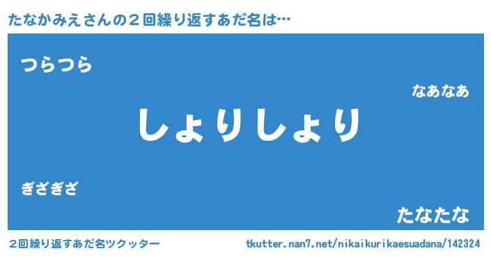 | 男性向けラノベタイトル風あだ名 | 『この素晴らしい世界にたなかみえを!』 |