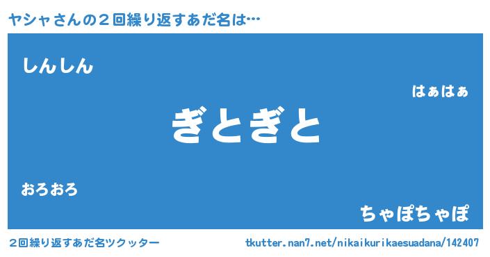 | ヘコむあだ名 | 『ヤシャ(震え声)』『ヤシを』 |
