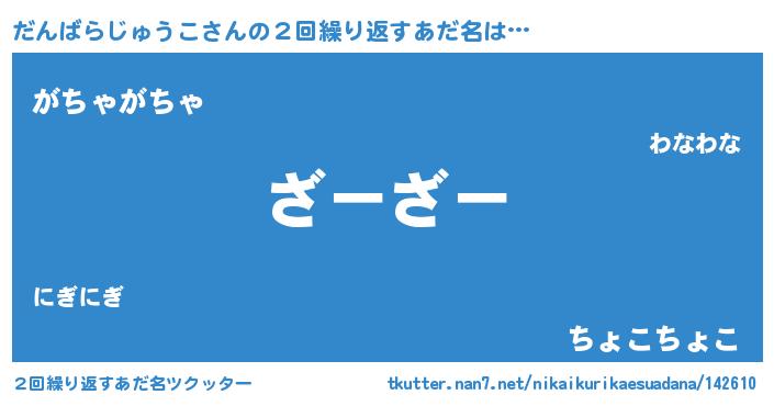 | 意味不明あだ名 | 『住所不定無職だんばらじゅうこ(8歳)』 |