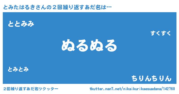| 男性向けラノベタイトル風あだ名 | 『とみたはるきの嫁は女の子じゃないと思った?』 |