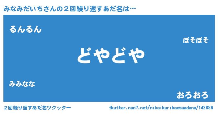 | 男性向けラノベタイトル風あだ名 | 『うちのみなみだいちが世界を掌握している!』 |