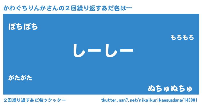 | 意味不明あだ名 | 『住所不定無職かわぐちりんか(77歳)』 |