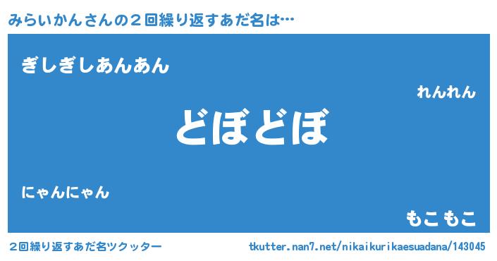 | 意味不明あだ名 | 『永久保存みらいかん』『自称みらいかん』 |