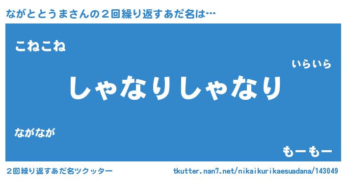 | 意味不明あだ名 | 『住所不定無職ながととうま(56歳)』 |