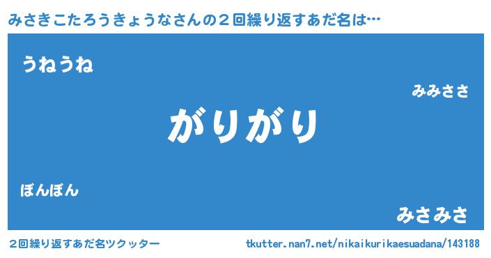 | ヘコむあだ名 | 『みさきこたろうきょうな(遠い目)』 |