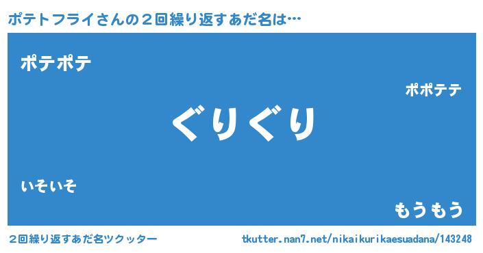 | ヘコむあだ名 | 『ポテトフライ(苦笑)』『ポテもー』 |